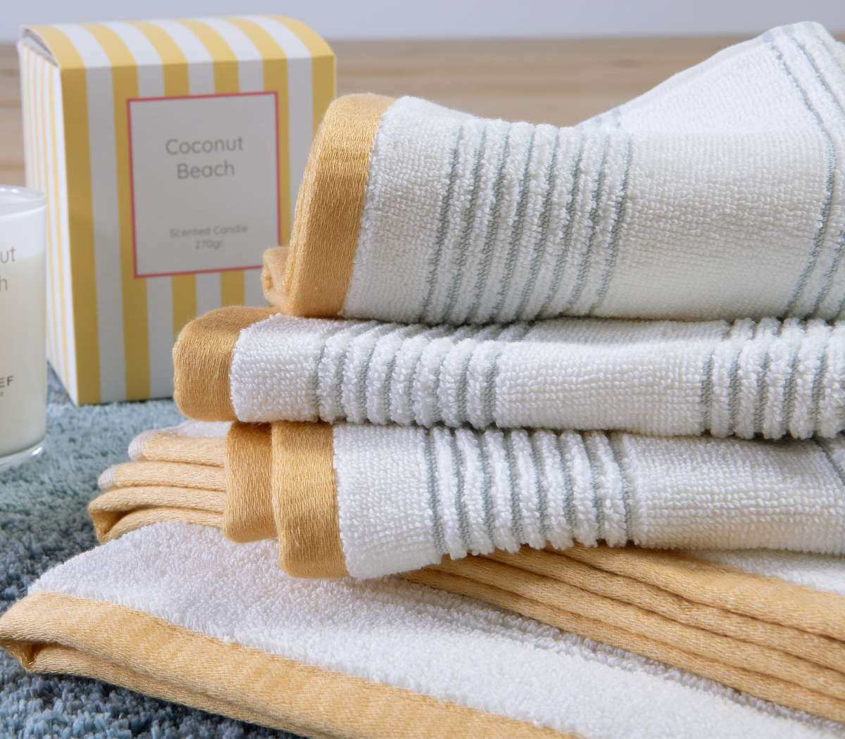 Οι πετσέτες διατίθενται σε τρεις πρακτικές διαστάσεις — χειρός, προσώπου και σώματος — ώστε να καλύπτουν όλες τις καθημερινές ανάγκες του μπάνιου και να δημιουργούν ένα ολοκληρωμένο και αρμονικό σύνολο.